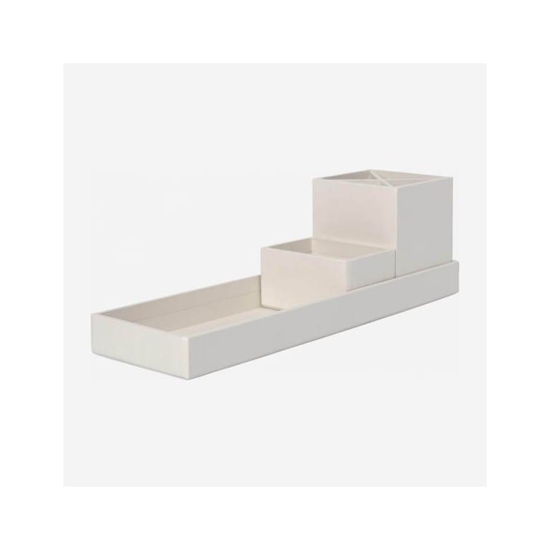 The Ada desk organizer is made of grey cardboard. It consists of 3 removable elements: 1 tray, 1 box and 1 pencil cup with 4 compartments. With it, all your supplies are perfectly arranged and ready to use.