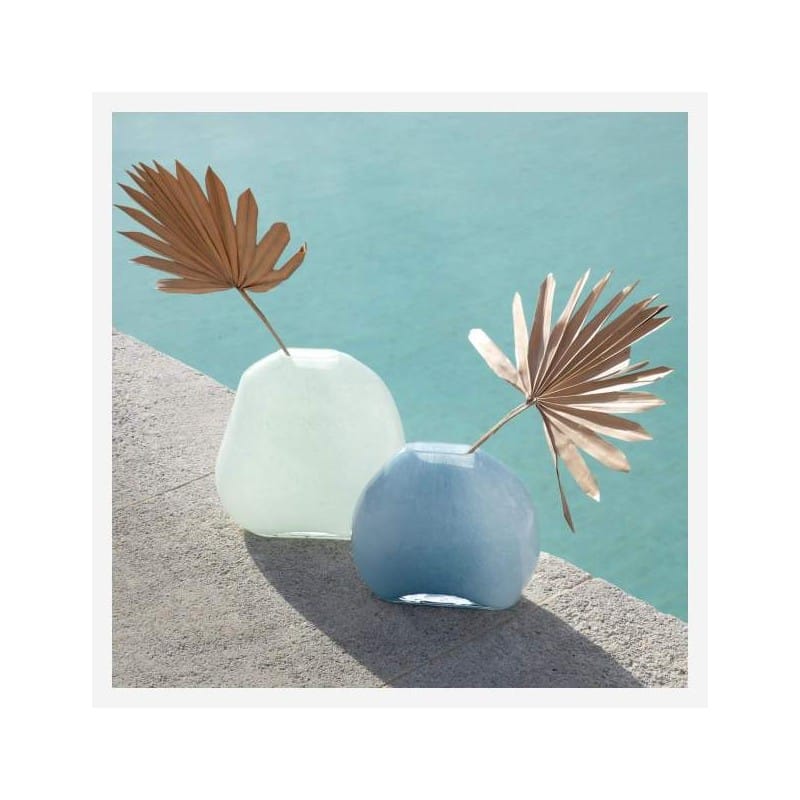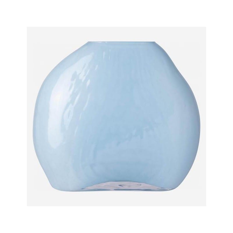 The clean design of the Aqua series is defined by thin, light and rounded lines. With their organic shapes, the vases in this series are decorated with pastel colours for a delicate and poetic look. This 23 cm Aqua vase is a unique piece of mouth-blown glass. Its irregular curves make it look like a drop of water. Its very light blue colour enhances this effect. This blue vase adorns the surface of the furniture, enhancing it with a touch of lightness and delicacy.