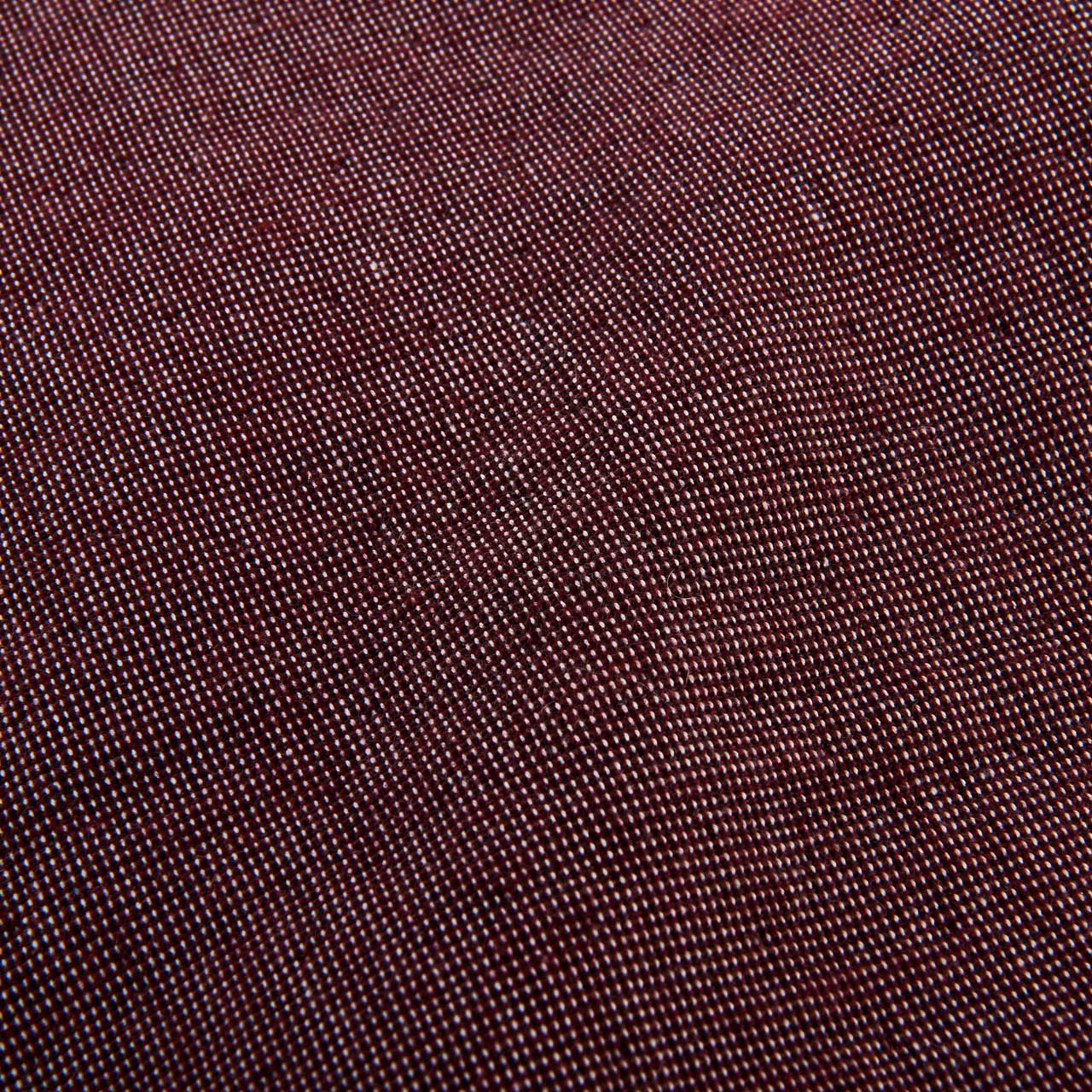 Η Clarisse δίνει μια ηλιόλουστη ενέργεια στους εσωτερικούς χώρους με αυτό το βαμβακερό κάλυμμα, συνδυάζοντας φυσικά υλικά, διακριτικά σχέδια και μπορντό χρώμα σε μια δημιουργία της Floriane Jacques.