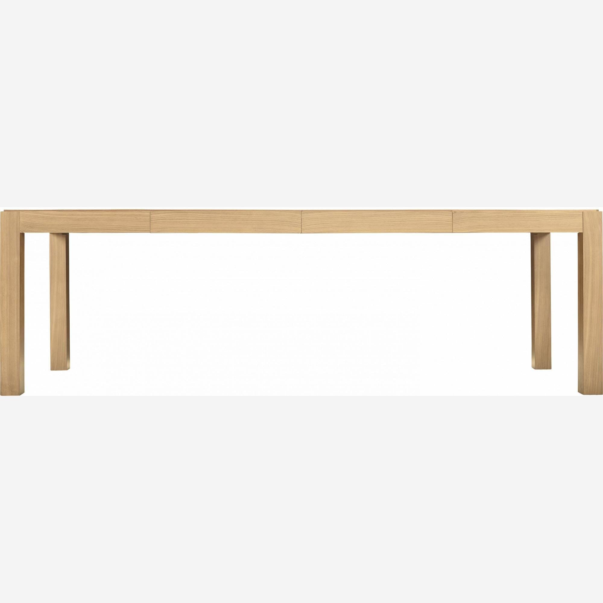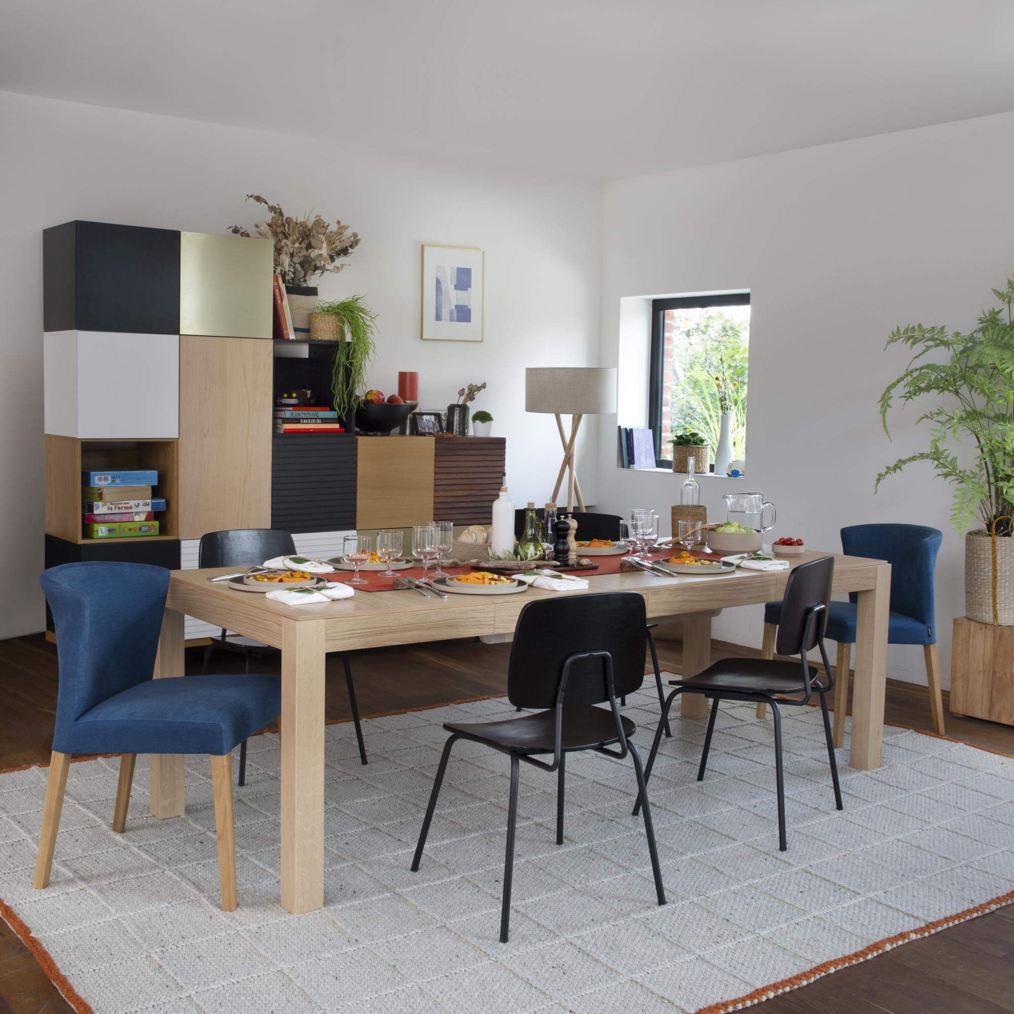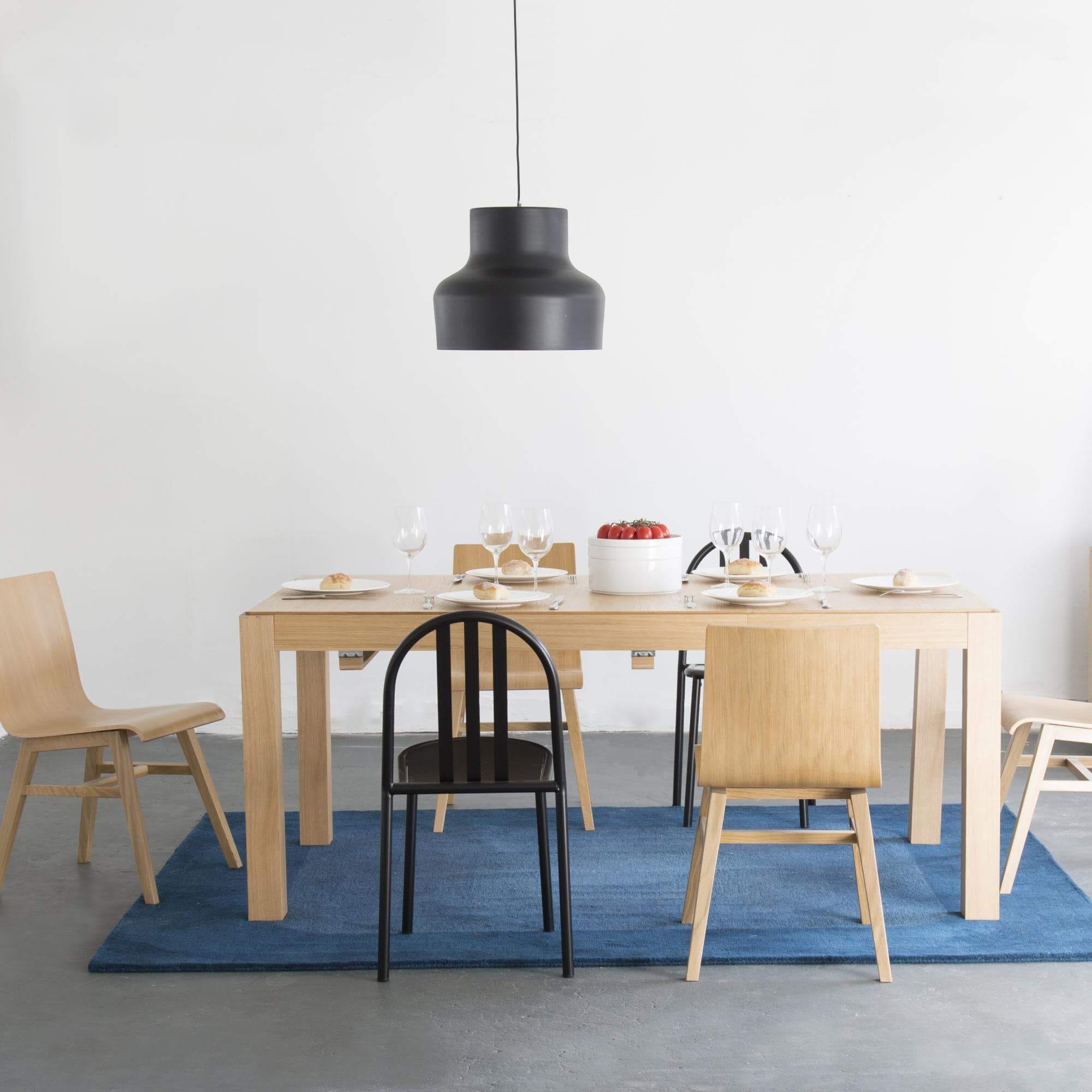 Extendable, this oak table accommodates between 4 and 8 guests. It is the ideal table for large families or dinners with friends. Under the top, a very practical place is provided to store the extensions once you no longer need them. Drio‘s feet remain positioned at the corners, in order to offer better seating comfort to the guests.