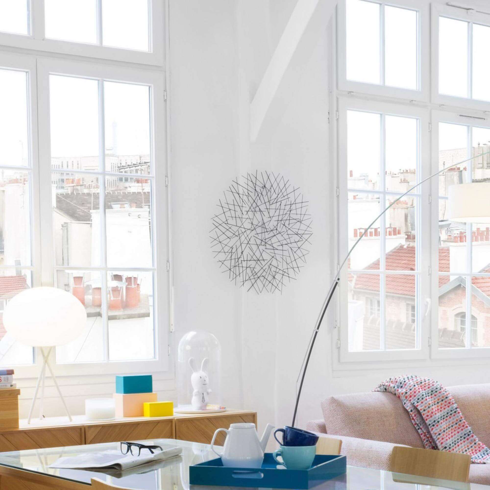 Made in metallic threads, the Maddox wall decoration plays with the superposition and the perspectives to play with our optical illusion. An object that is both decorative and artistic.