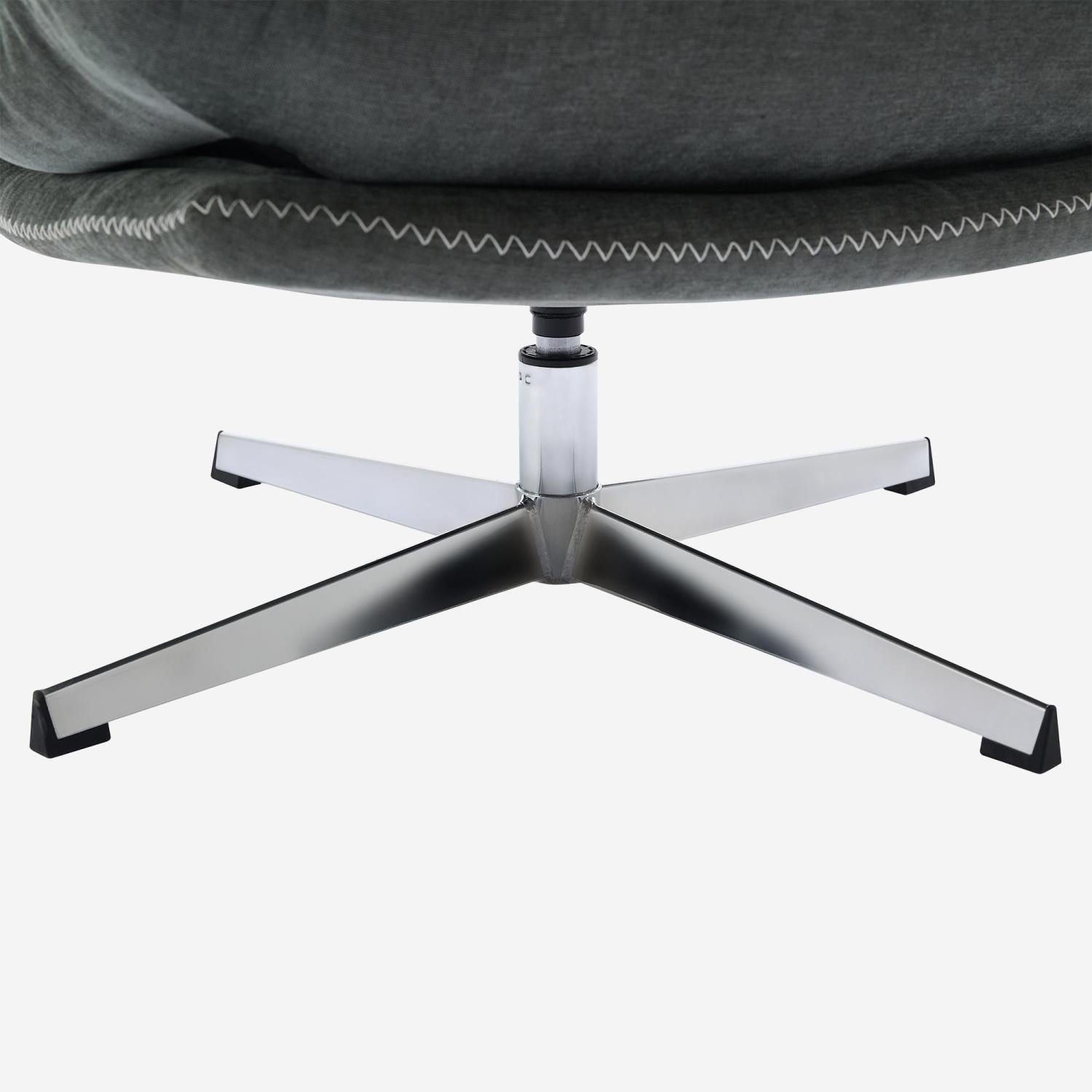 Oderzo Swivel armchair with fabric and chromed metal footrest – fir green