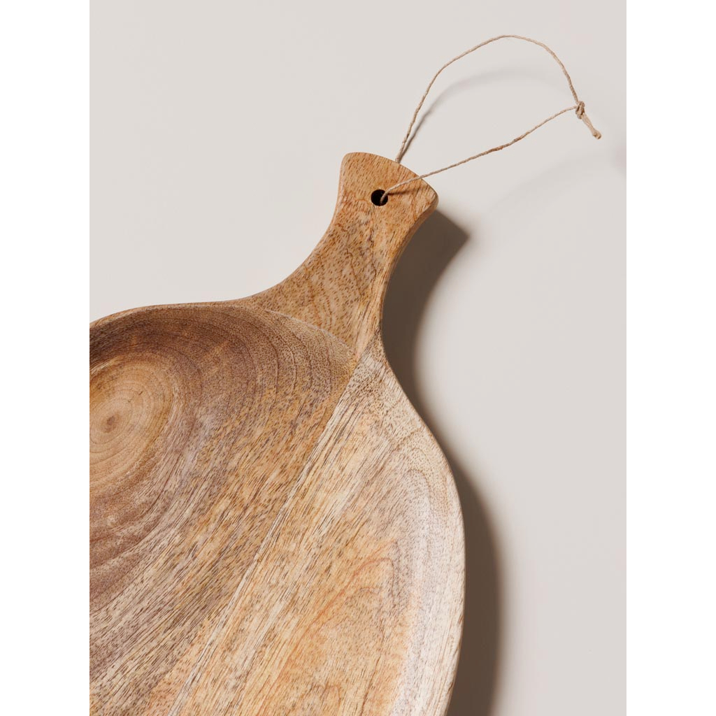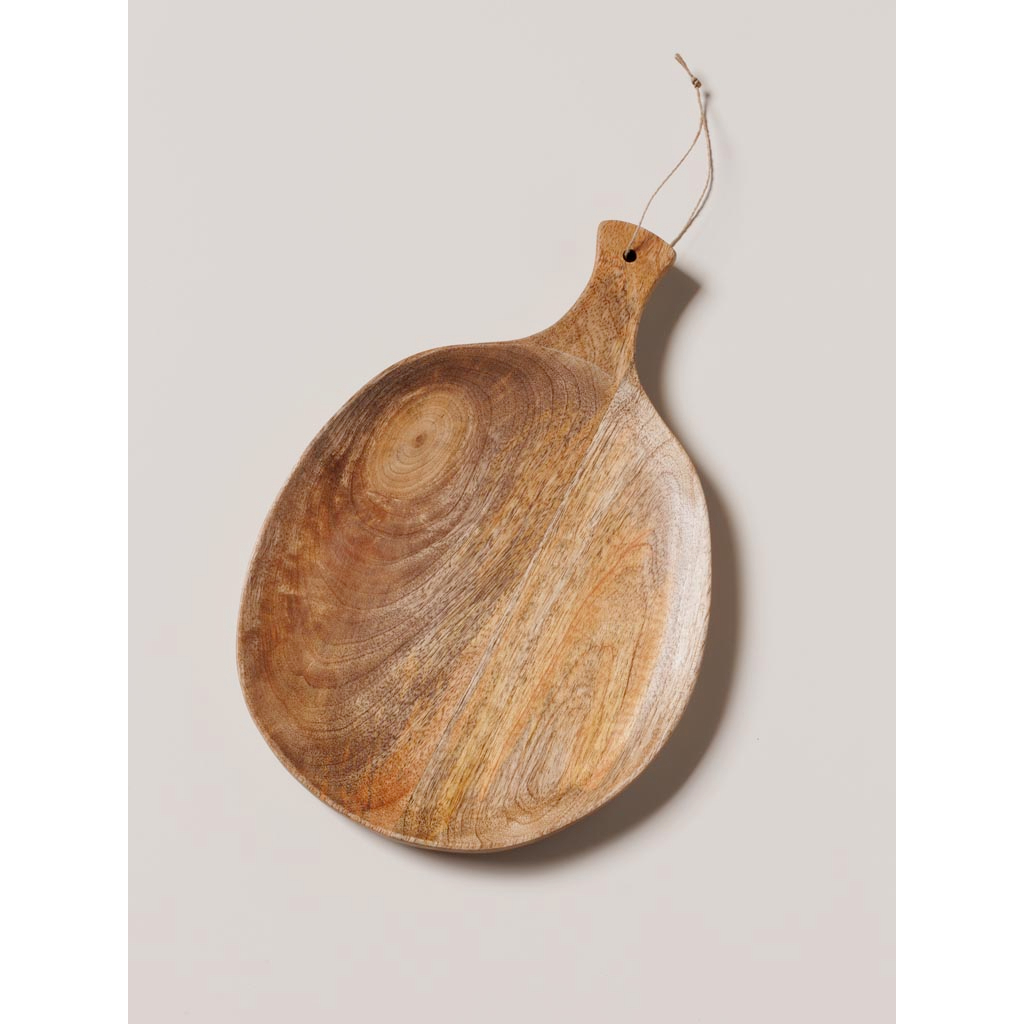 Ο μεγάλος δίσκος σερβιρίσματος PLAT, φτιαγμένος από ξύλο μάνγκο, συνδυάζει λειτουργικότητα και αισθητική. Με το πρακτικό χερούλι, η μεταφορά των αγαπημένων σας πιάτων γίνεται εύκολη.