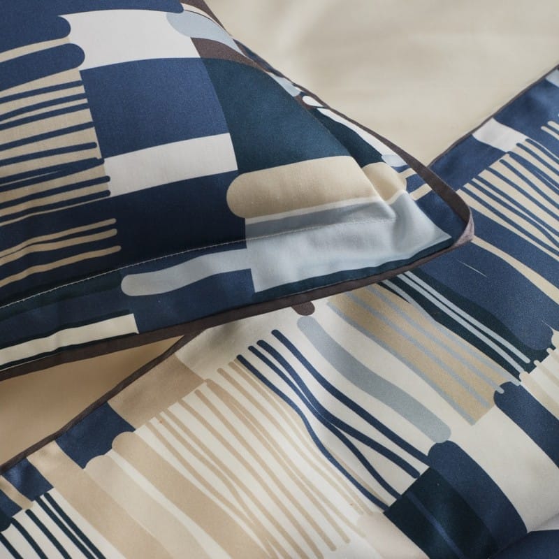 SAHORY brings color and fantasy into your bedroom decoration. Its elegant pattern mixes touches of beige, blue and gray.