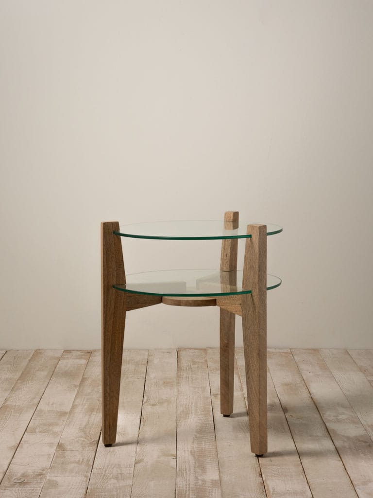 Mustard glass and mango wood side table D 55 x H cm