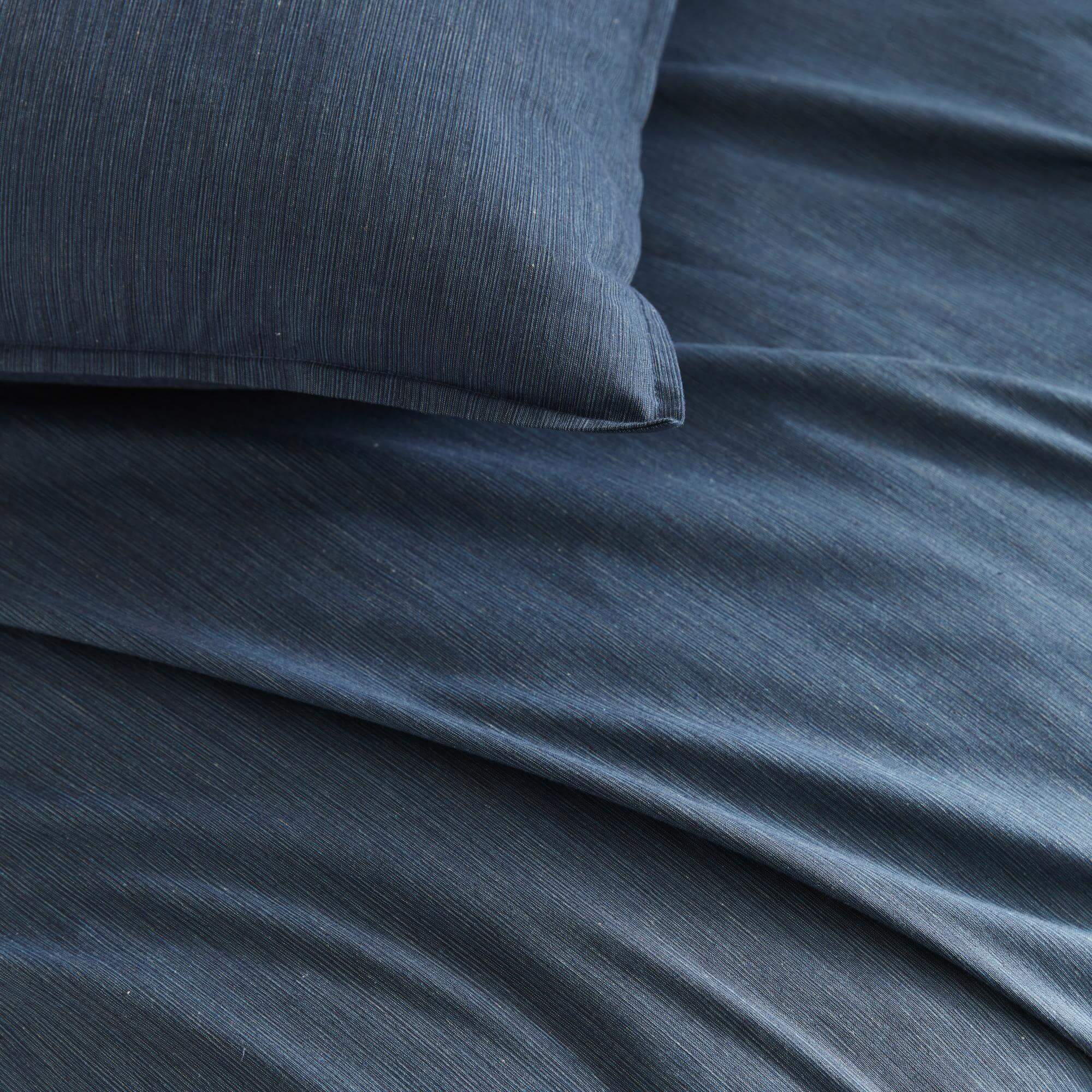 The Skye cotton duvet cover is compatible with 220 x 240 cm duvets. Midnight blue in color, it is made of threads of different shades.