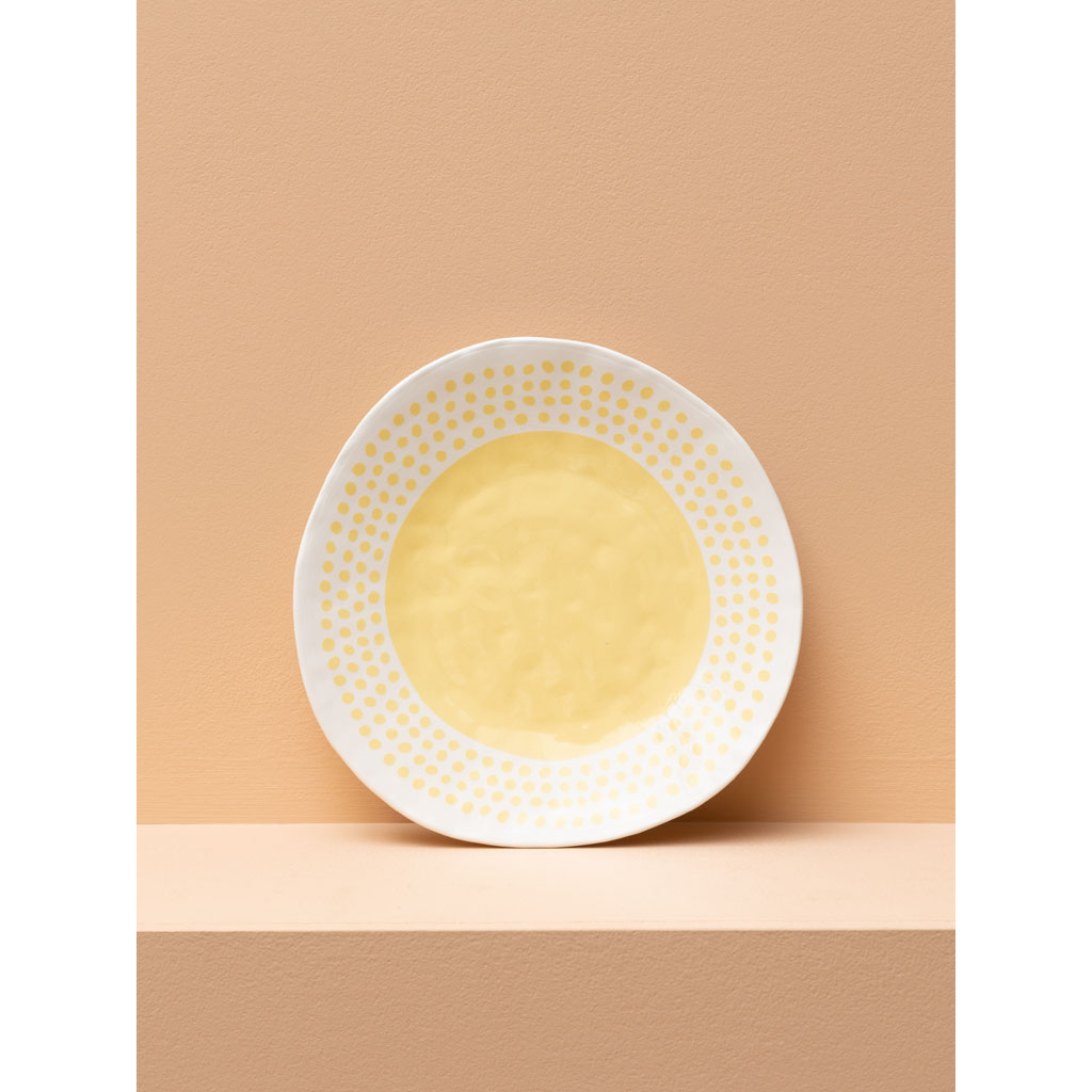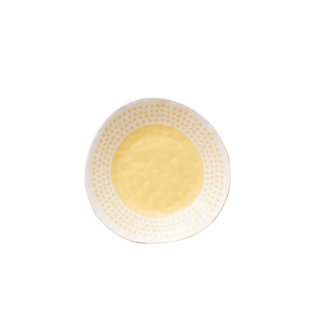 H απόλυτη χαρά του φαγητού έρχεται με το SUNSHINE πιάτο! Αυτό το εντυπωσιακό κίτρινο πιάτο, διακοσμημένο με πολύχρωμες κουκίδες, προσθέτει μια δόση φωτεινότητας και ζωντάνιας σε κάθε γεύμα σας. Η πορσελάνη υψηλής ποιότητας εξασφαλίζει αντοχή και μακροχρόνια χρήση, ενώ η απαλή υφή του προσφέρει μια ευχάριστη αίσθηση στο χέρι. Ιδανικό για καθημερινή χρήση ή για ειδικές περιστάσεις, το SUNSHINE πιάτο θα γίνει το αγαπημένο σας κομμάτι στη συλλογή σας. Το φωτεινό του χρώμα και η παιχνιδιάρικη σχεδίαση το καθιστούν ιδανικό για να εντυπωσιάσετε τους καλεσμένους σας ή απλά να προσθέσετε μια νότα χαράς στο καθημερινό σας τραπέζι