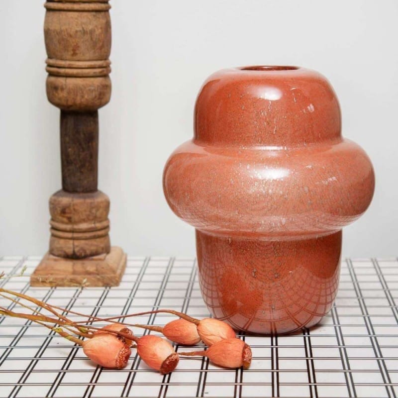 This vase is made of mouth-blown glass. The pigments are integrated into the molten glass to give an authentic and deeper color.