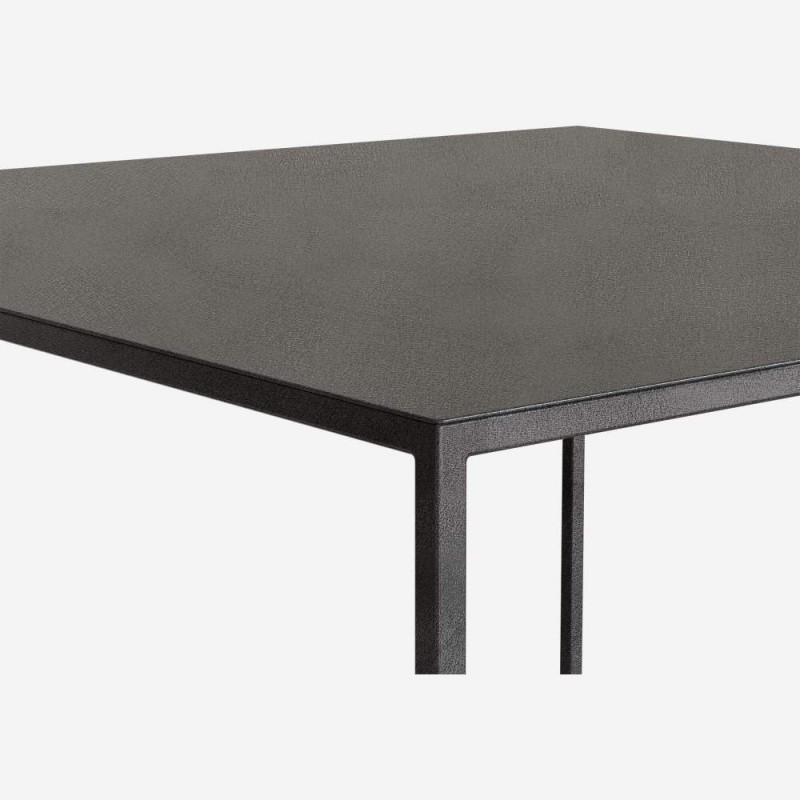 The Utyl series is characterized by a minimalist design, inspired by Scandinavian design. Made by talented iron craftsmen, these tables are the product of real expertise. The use of coarse-grained metal gives the table an exquisite embossed effect, for a strong quality performance. Covered in black matte paint, these tables bring a touch of modernity to your interior, while remaining extremely discreet. The Utyl metal console has a rectangular shape. Its geometric design and sober lines bring a neo-industrial touch to your decoration. In your living room or hallway, this side table is ideal for storing your objects.
