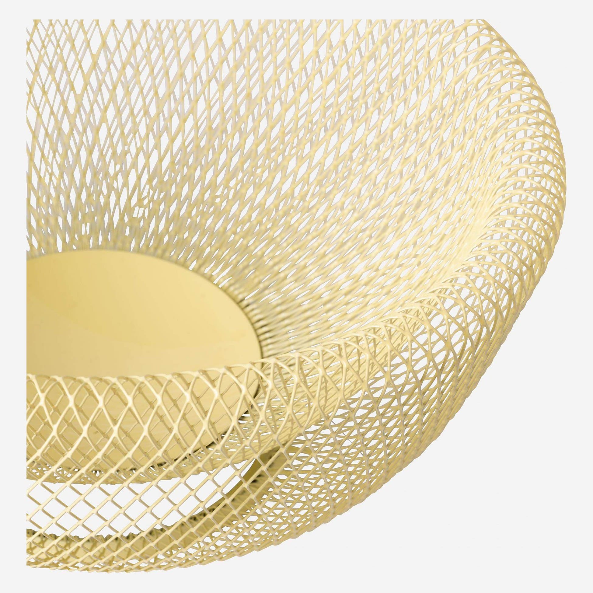 Κατασκευασμένο από μέταλλο, το καλάθι Aude έχει διαστάσεις 25,5×13 cm. Ανθεκτικό και ελαφρύ, αυτό το στρογγυλό καλάθι αναδεικνύεται από ένα μοτίβο πλέγματος, που τονίζεται από ένα εντυπωσιακό παστέλ κίτρινο χρώμα.