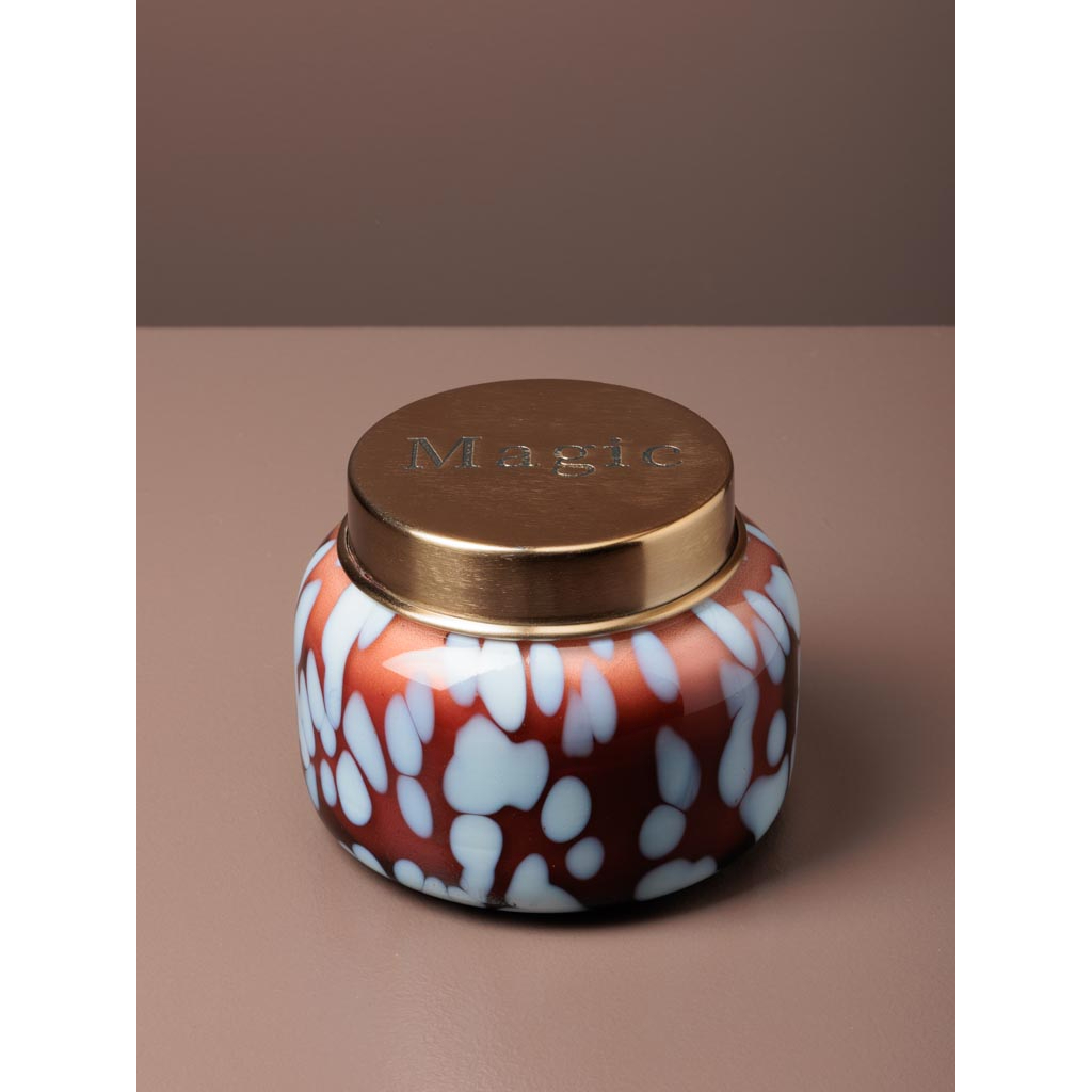 CANDLE λευκό κερί σε γυάλινο βάζο χαραγμένο καπάκι Magic