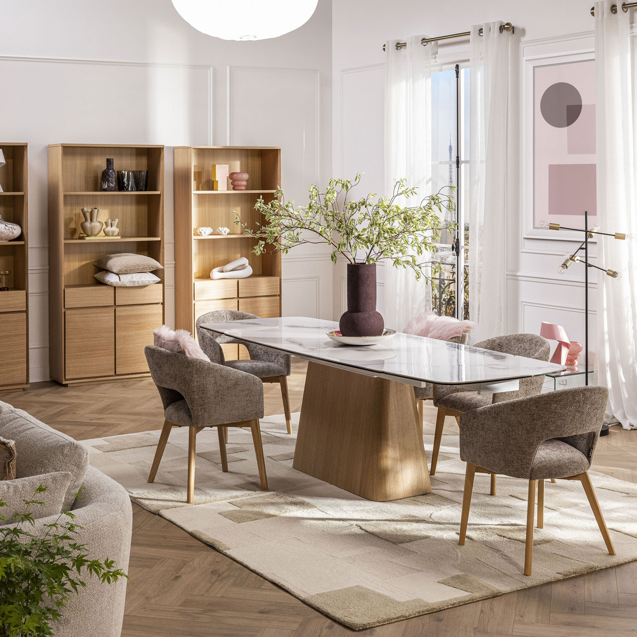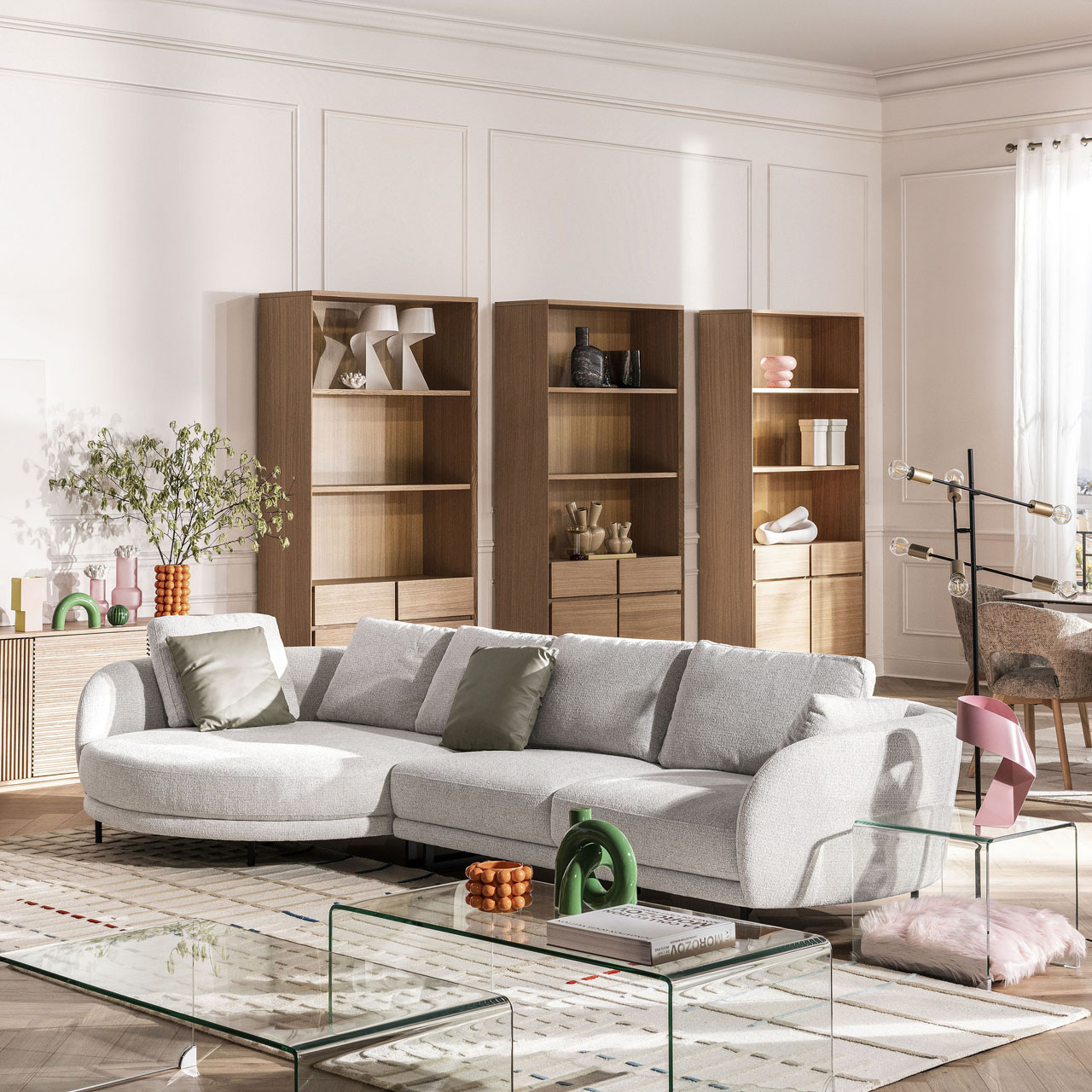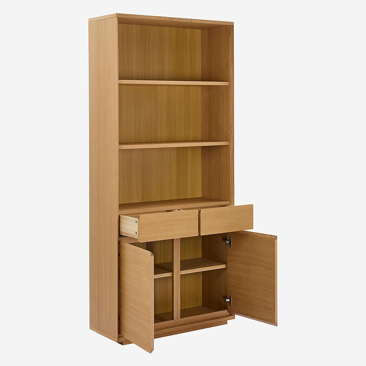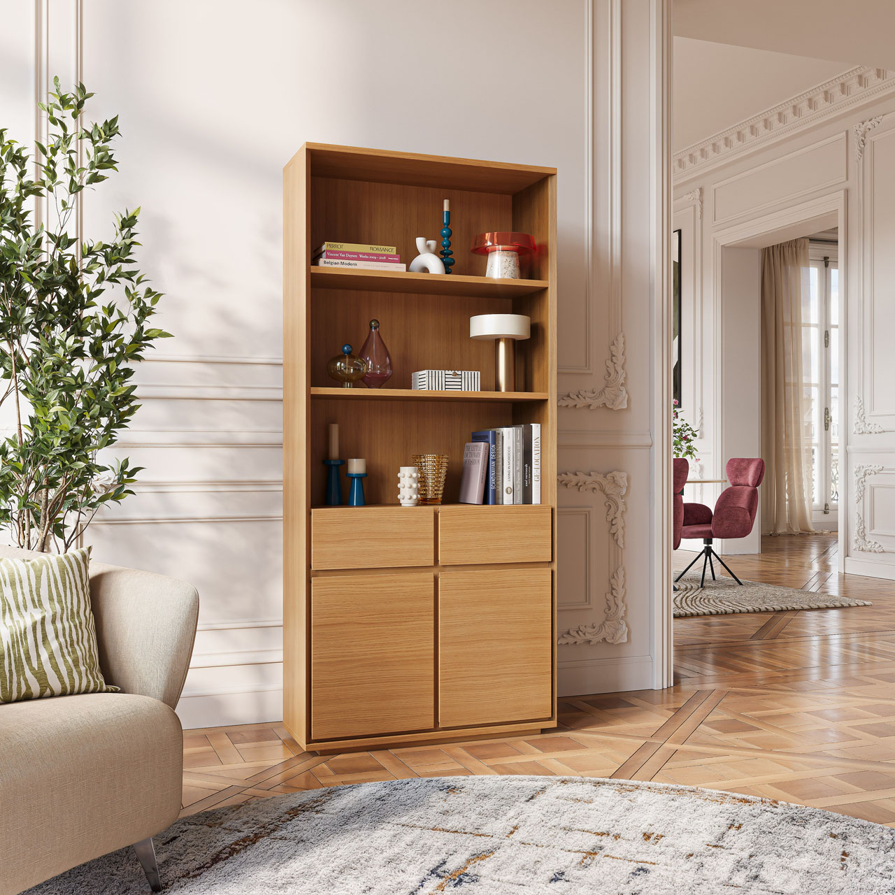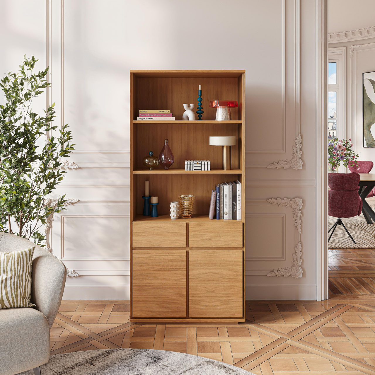 Καθαρές γραμμές, άφθονος αποθηκευτικός χώρος και φινίρισμα από φυσικό δρυς χαρακτηρίζουν αυτή τη βιβλιοθήκη με διαχρονικό στυλ. Ένα αυθεντικό έπιπλο σχεδιασμένο για να αναδεικνύει τα βιβλία και τα αντικείμενα της καθημερινότητας.