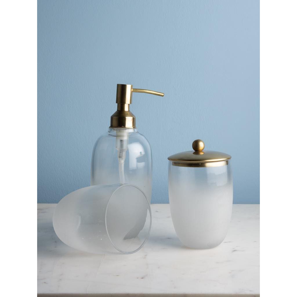 Dispenser από γυαλι αμμοβολή. Ιδανικό για υγρό σαπούνι, λοσιόν ή απολυμαντικό χεριών, συνδυάζει τη λειτουργικότητα με το στυλ, καθιστώντας το απαραίτητη προσθήκη στο σπίτι σας. Μετατρέψτε την καθημερινή σας ρουτίνα σε μια πολυτελή εμπειρία με αυτό το όμορφο αξεσουάρ.