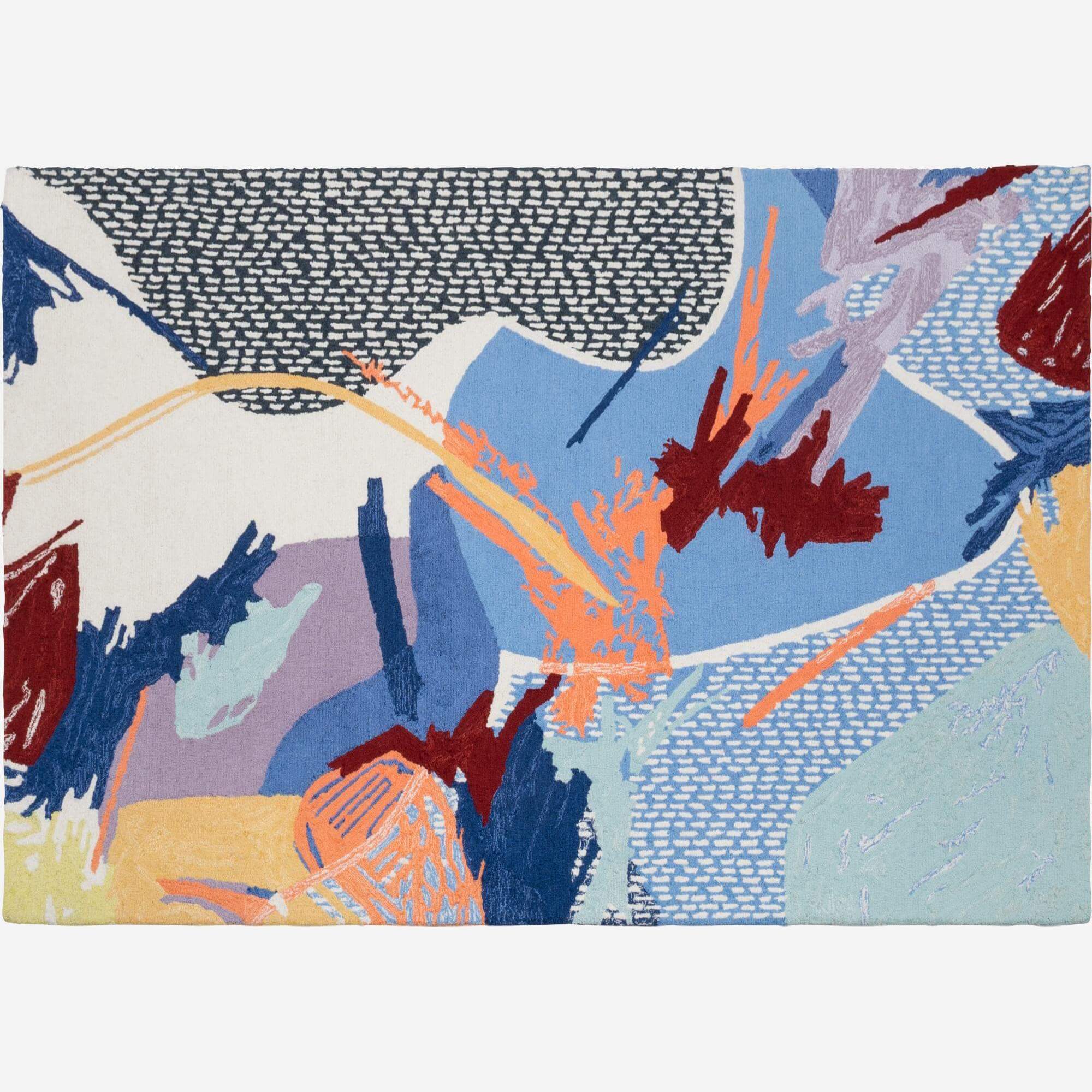 Κατασκευασμένο στην Ινδία, το Stela είναι ένα χαλί από μαλλί και βαμβάκι υψηλής ποιότητας. Υφαντό στο χέρι, αυτό το χαλί είναι διακοσμημένο με ένα αφηρημένο σχέδιο της Floriane Jacques, γραφίστας και εικονογράφο στο Design Habitat Studio.