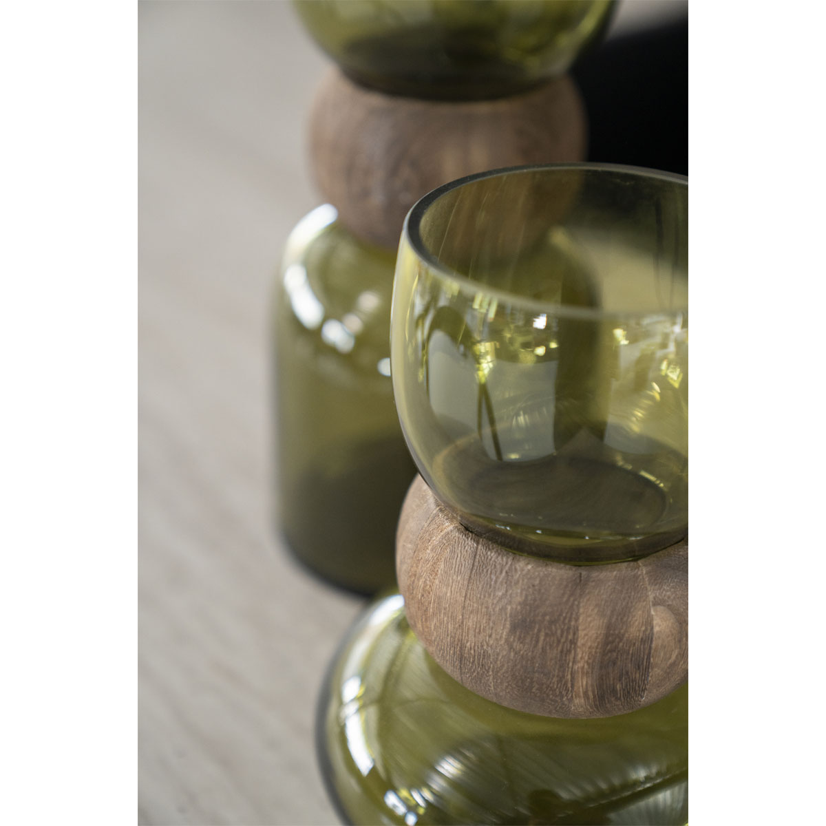 VERRA S – green βάζο με λεπτομέρεια από ξύλο – 16,3×16,3×23,5 cm