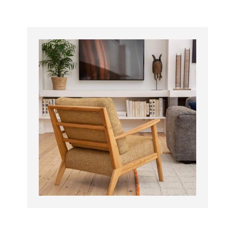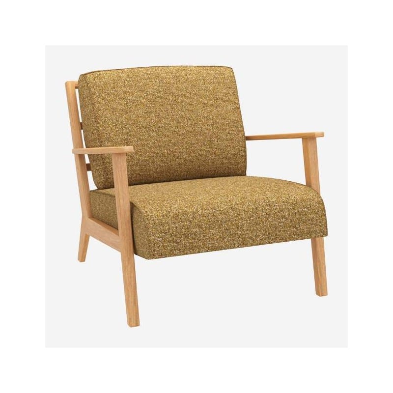 Η πολυθρόνα Viken II με κίτρινο ύφασμα Venezia είναι μια πρόσκληση για χαλάρωση. Η ελαφρώς κεκλιμένη πλάτη παρέχει επιπλέον άνεση. Το κάθισμα διαθέτει ξύλινο σκελετό με λαδωμένο φινίρισμα που αναπτύσσει πατίνα με την πάροδο του χρόνου.